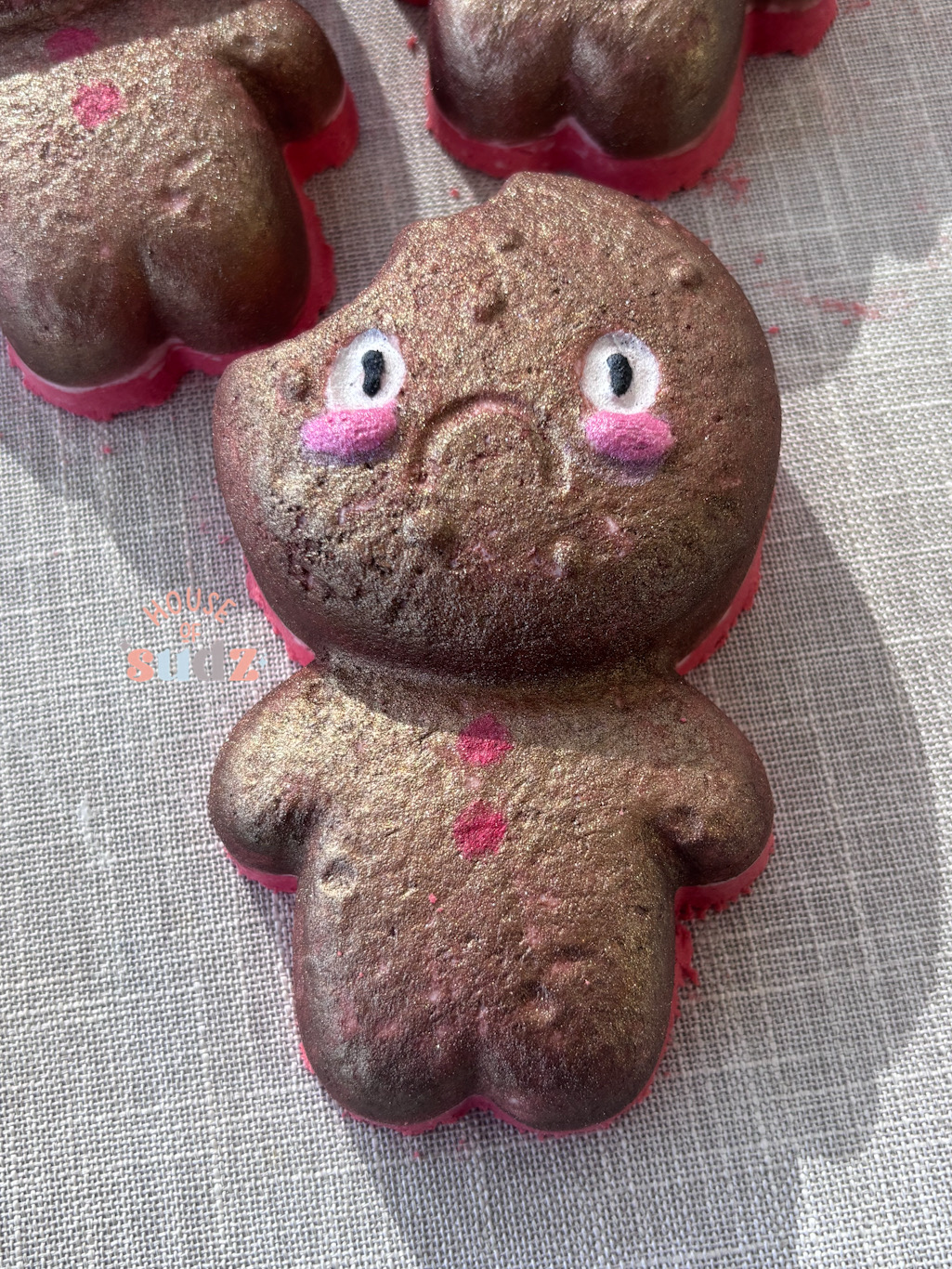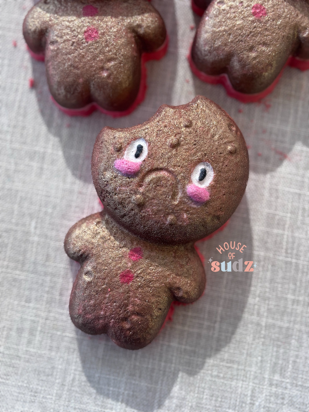 Bitten Gingerbread Man Bath Bomb Ingredients (Common Name):Â Baking Soda, Citric Acid, Cornstarch, Epsom Salt, Coconut Oil, Polysorbate 80, Fragrance Oil, SLSA, FD&C Colorants, Mica, Iron Oxide, Isopropyl Alcohol